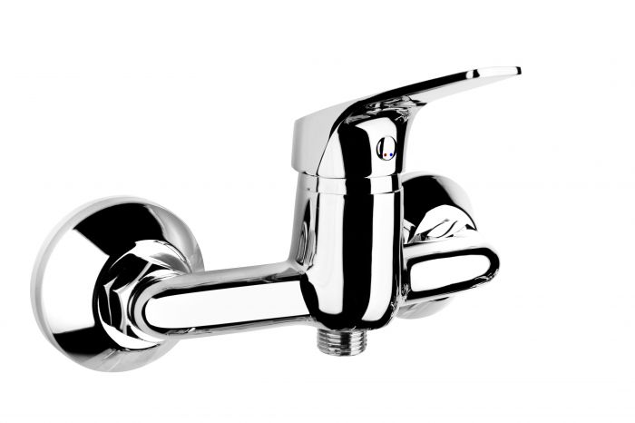 SAN-ECO bateria natryskowa ścienna 1-uchwytowa 2-otworowa chrom z zestawem natryskowym, z zestawem montażowym