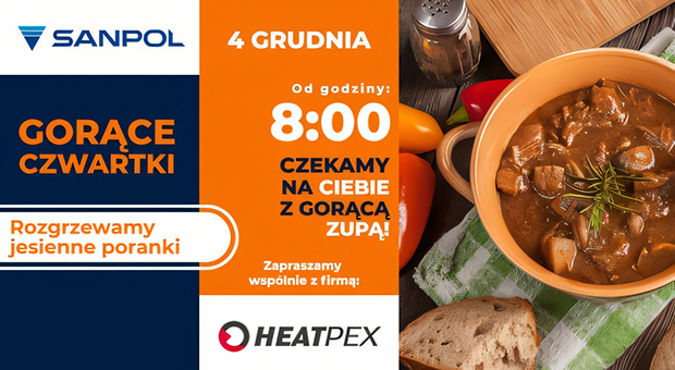 Zapraszamy na spotkanie z przedstawicielem Heatpex w naszym punkcie handlowym! Będzie okazja porozmawiać o nowościach i…zjeść ciepłą zupkę na rozgrzewkę.