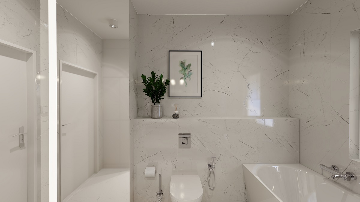 Pamiętaj, aby wybierać wysokiej jakości materiały wykończeniowe, które będą odporne na odbarwienia i uszkodzenia. Biała ceramika jest szczególnie narażona na działanie kosmetyków czy silnych środków czyszczących. Ponadto warto postawić na armaturę podtynkową, która prezentuje się bardzo nowocześnie i estetyczne kabiny z przezroczystym szkłem. Wiele ciekawych rozwiązań znajdziesz w ofercie marek Geberit, Roca i Sanplast.