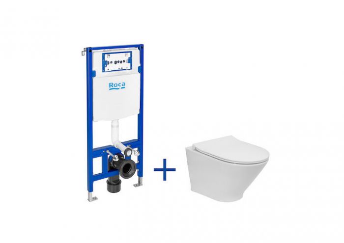 Zestaw WC podtynkowy ROCA DUPLO ONE do kompletacji z przyciskami spłukującymi z oferty DUPLO WC ONE w komplecie: stelaż DUPLO WC ONE i miska WC GAP ROUND COMPACTO z deską wolnoopadającą slim, duroplast | A893104480